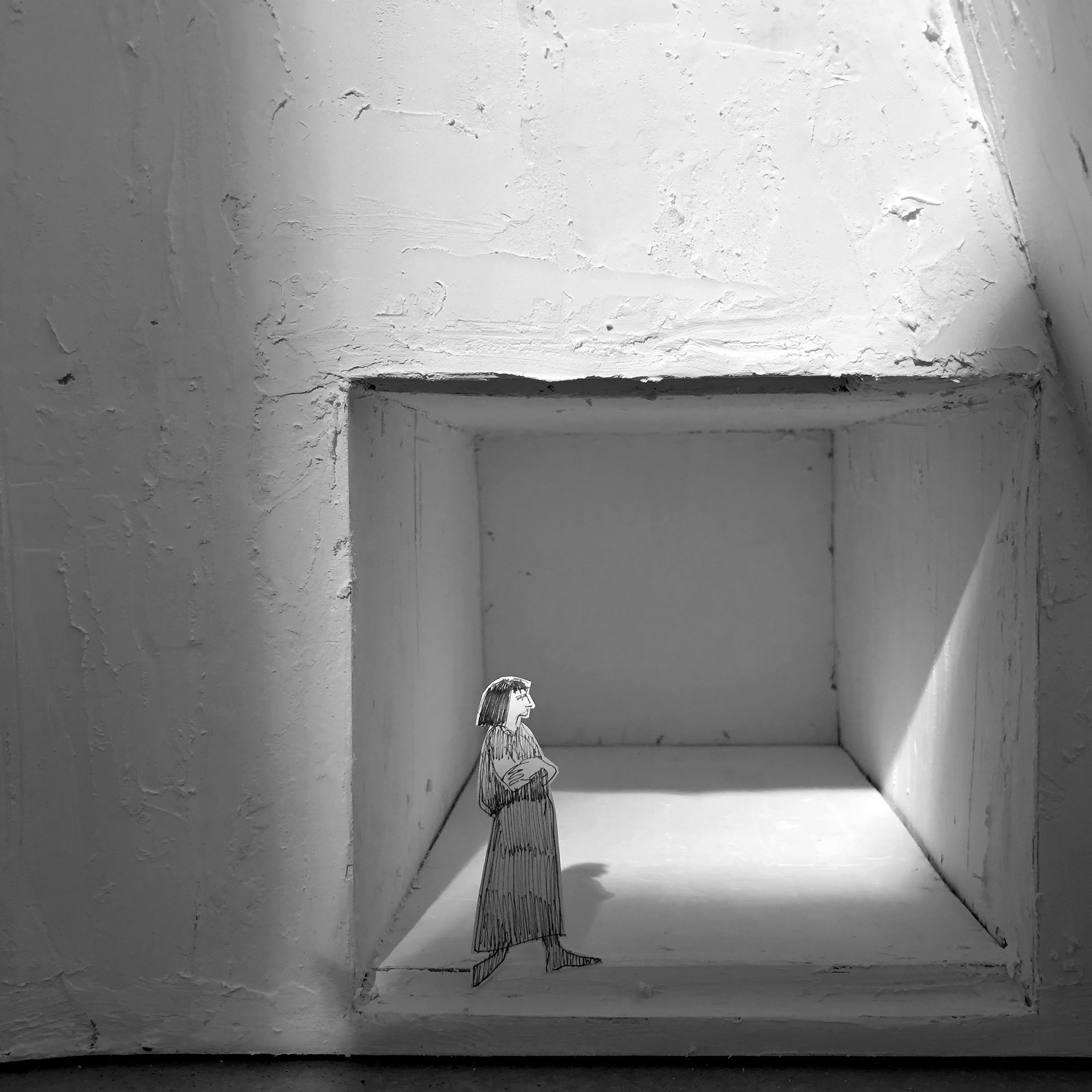 The collection of spaces is connected and united by the gap going through all of the rooms and creating different light conditions.
