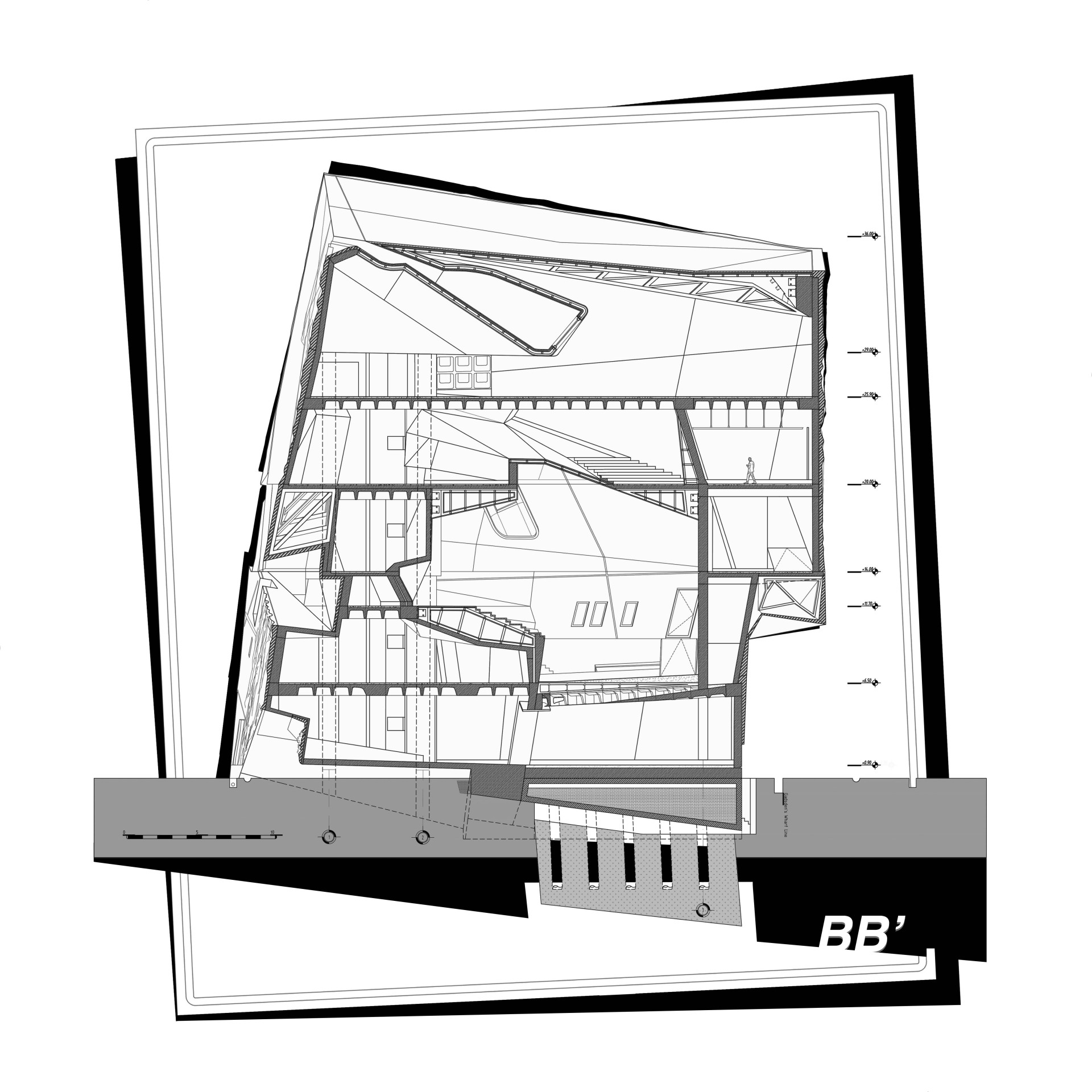 The project seeks out contemporary architectural expressions while putting the ground into question as architecture’s stable substrate and contrasting it to current reactionary formal impulses. The ur-formal approach takes shape with the diagrammatic toolsets such as sweep, rotate, boolean while orienting the mass through the references of the site's prominent elements. Re-appropriation of form for programmatic and site-specific relationships creates the backbone of the Jettison: the ur-formal.